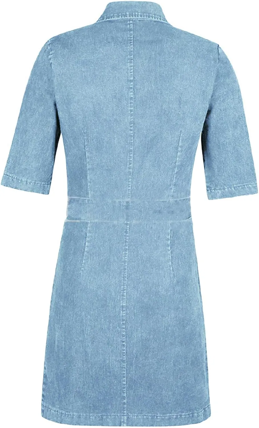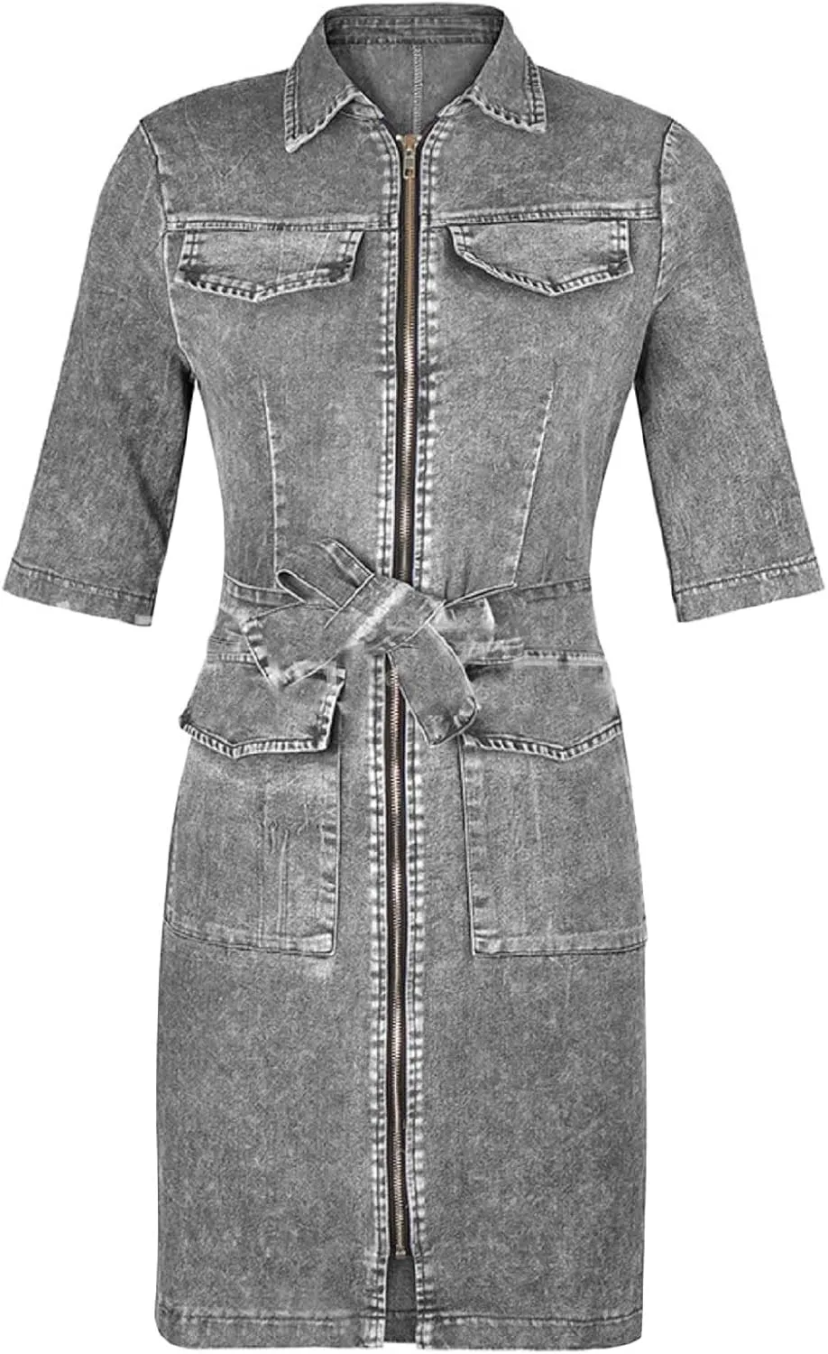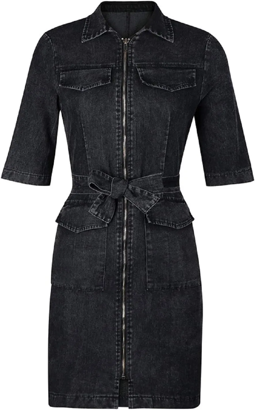 • Women's Bodycon Lapel Collar Front Zip Bow-Tie Pockets Mini Denim Dress
