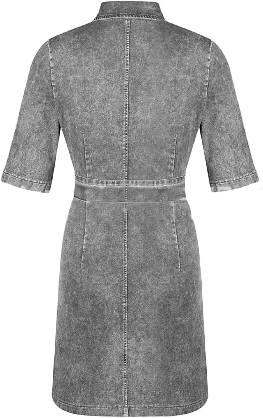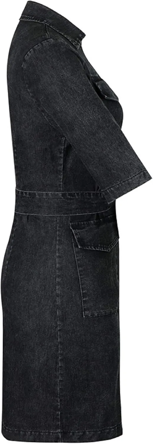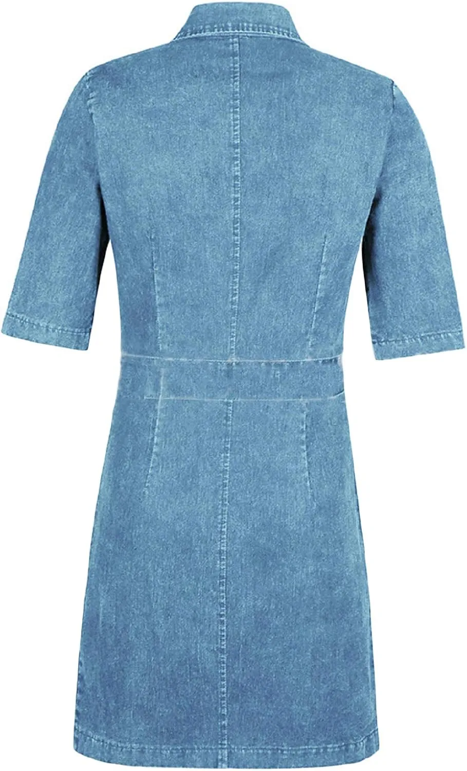 • Women's Bodycon Lapel Collar Front Zip Bow-Tie Pockets Mini Denim Dress